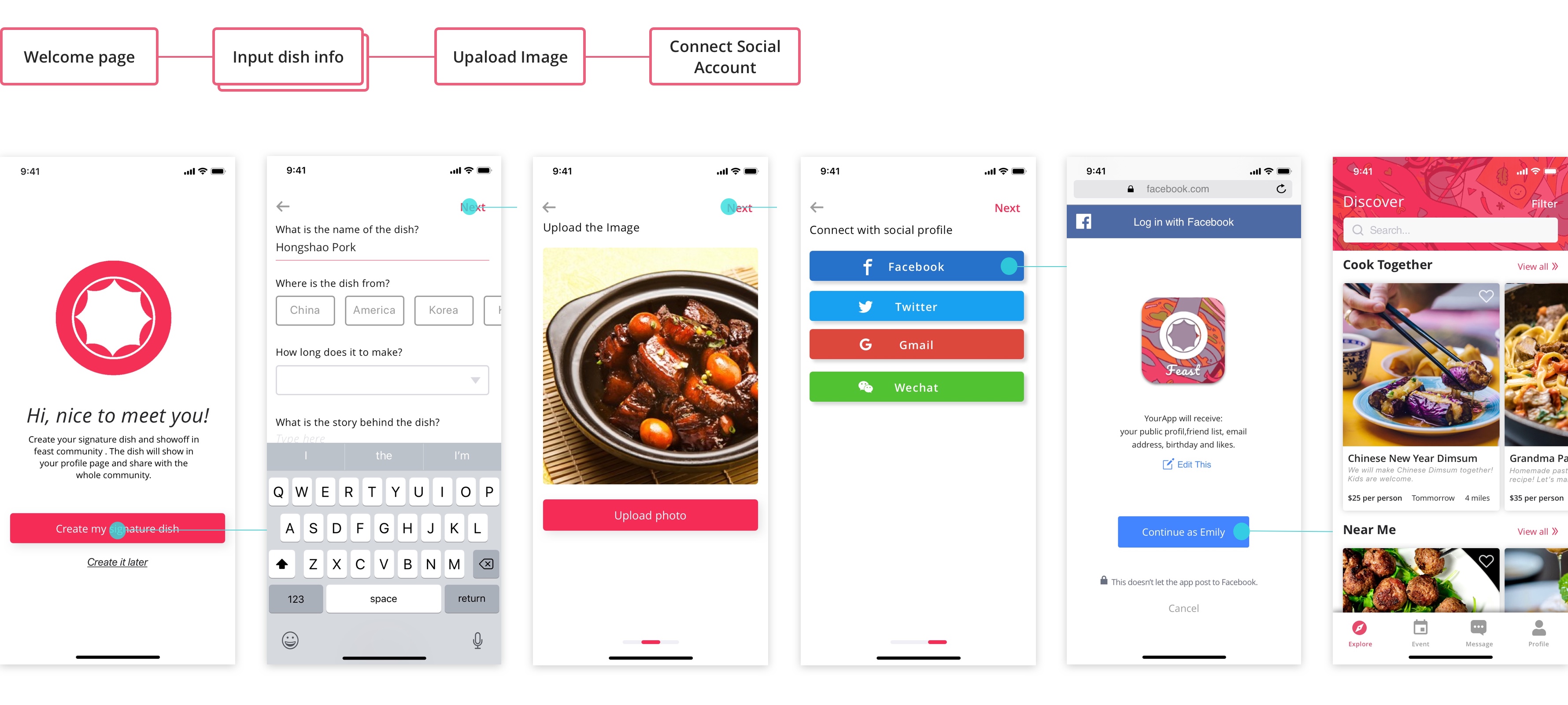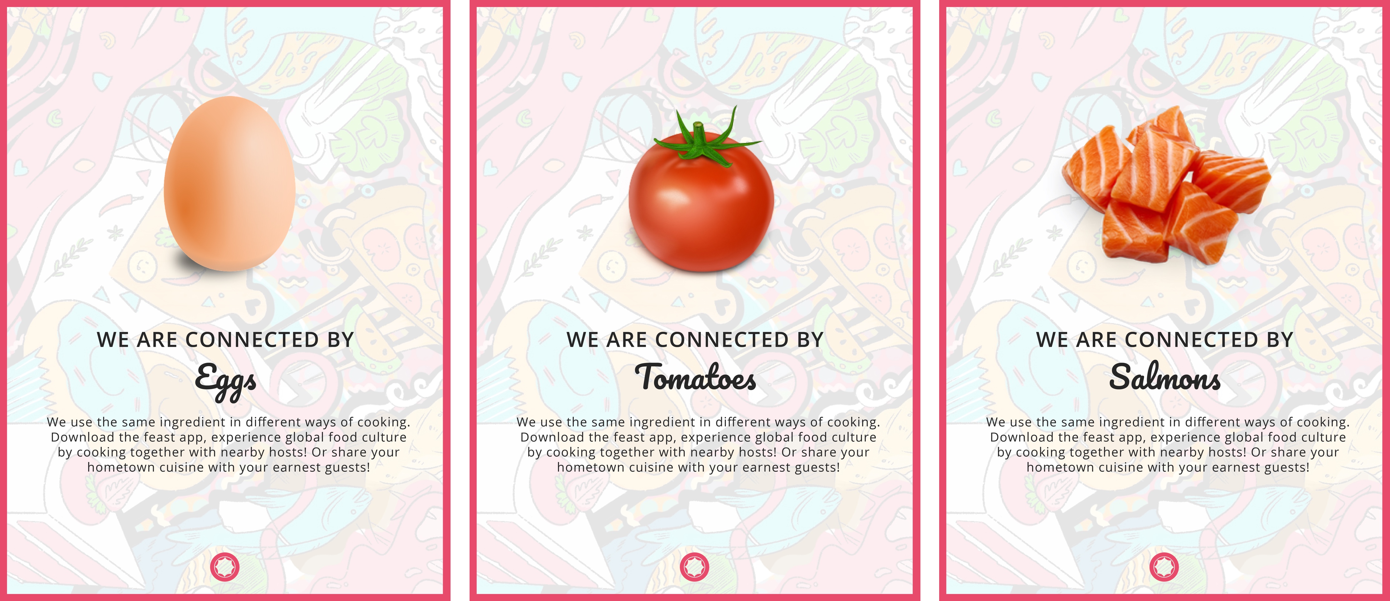 The design goal is to connect people, builds new relationships and creates a memorable moment. The feast is not only a meal sharing or friends hangout app.