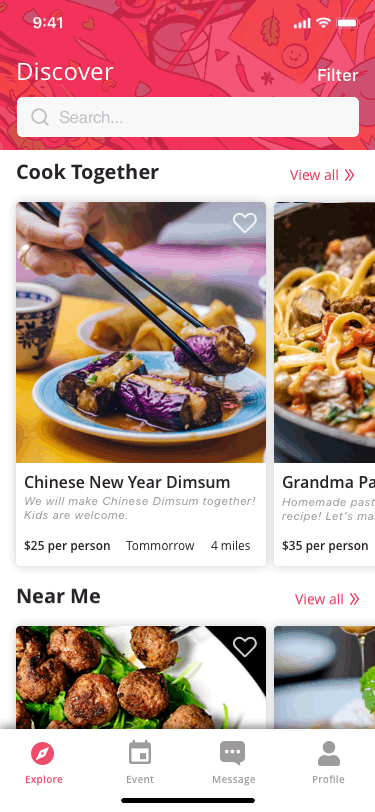 Make food together events will show at the top of exploring page.